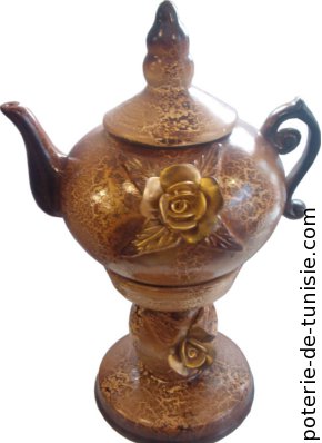 This Large Oriental Teapot that match the wood colors consists of three parts, each is decorated with a golden floral pattern in relief. Upon request, this model can be provided without floral pattern.Decorative purpose only