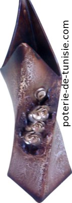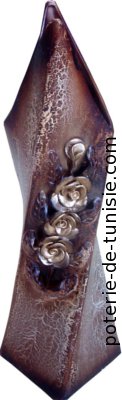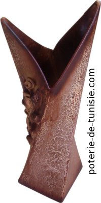Description :the opening of this vase is strangely similar to an opening mouth of a fish.decorated with a flower in relief this piece will permeate your atmosphere with an unusual air.
