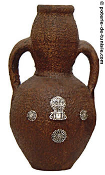 Poterie avec plaques argentés